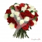 Bouquet de rosas que reflejan Amor en una fina combinación de rosas (blancas y rojas pureza) arreglo especial y delicado, para esa persona única (En 5 Tamaños diferentes).