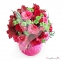 Hermoso Arreglo de flores en pecera de cristal con tonos rosas con lilis, rosas, yocos.