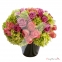 Original arreglo floral en maceta negra de cerámica, con perfecta combinación de rosas lila y rosa, hortensia y el toque de picassoflorescom
